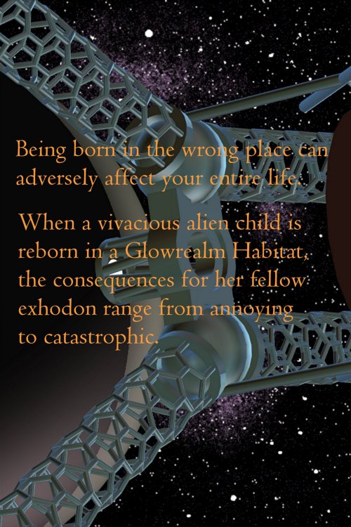 Our heroine's name is Chivandoe. She is born about one third into the book. The first third of the book sets the scene and introduces Chivandoe's two mothers and father, as well as other characters who may possibly be important in future stories. The central section covers Chivandoe's childhood development, with some exciting adventures demonstrating her general craziness and sharp wits, including the gruesomely realistic Grand Battle. In the last third of the book, Chivandoe has become a little more mature (but still somewhat unstable); then momentous events occur which determine the future direction of her life. Although this first story contains some fighting, sex, death, and destruction; it is mainly a tale of parenthood and childhood in a magically beautiful (and bizarrely alien) forest environment. Forget all you have ever seen of slobbering monsters; these characters are all truly wonderful exhodon. Just the sort of urbane aliens you could meet at any good party, and to whom you would even introduce your daughter. "Exhodon" is Book1 in a complex SF Saga, which covers millennia and 100's of lightyears of spacetime. Each volume is written as a self-contained story; but only after reading the entire set will the reader completely grasp the relationships between the diverse characters and events. The alien beings in this book, the Exhodon, are non-biologicals, hence theoretically immortal. An exhodon moves its brain (called a helm) from bodyform to bodyform as required. Bodies are built out of Nutrient Fluid by molecular machinery in Makers. They are almost as complex in structure and form as biological bodies, but are much more robust. Helms and bodies are powered by internal molecular fusion power packs. The Exhodon live inside millions of gigantic rotating space habitats, which orbit the brown dwarf called Glower. (See 'Images' and 'Factoids' for more info.)