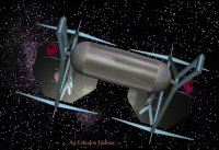 The cylindrical hull section is 5 Km diameter by 10 Km long. The Endcaps are hemispherical.